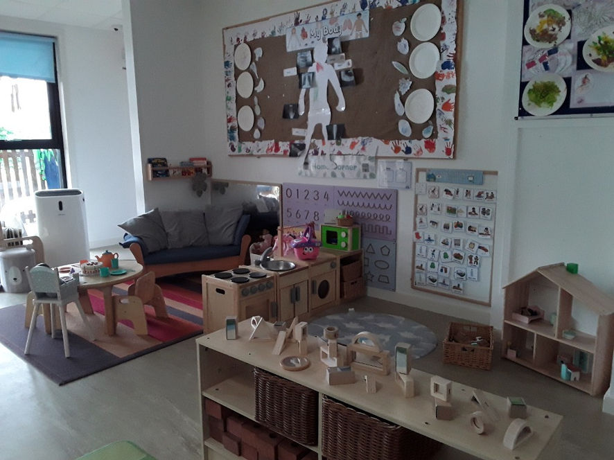 Our Toddler room is a perfect space for our two to three-year-old children. It is set up in a way that enables children to explore and develop their independence through resources that cover the seven areas of the Early Years Foundation Stage. We can take up to sixteen toddlers at any one time, and have four highly experienced members of staff to meet their needs. Children have opportunities to play as well as to experience a wide variety of adult-led and child-initiated activities, play is freely chosen by the child and this is usually highly creative and imaginative. We have an established role play area - ready for tea parties and teddy bears picnics, a construction zone for budding builders with cars, animals and loose parts to enhance learning. The toddlers also have a cosy book area, ready for sharing stories or taking a few quiet minutes before exploring again. Resources are displayed at child height, with low level shelving and storage to promote self-selection and are regularly rotated by the staff.